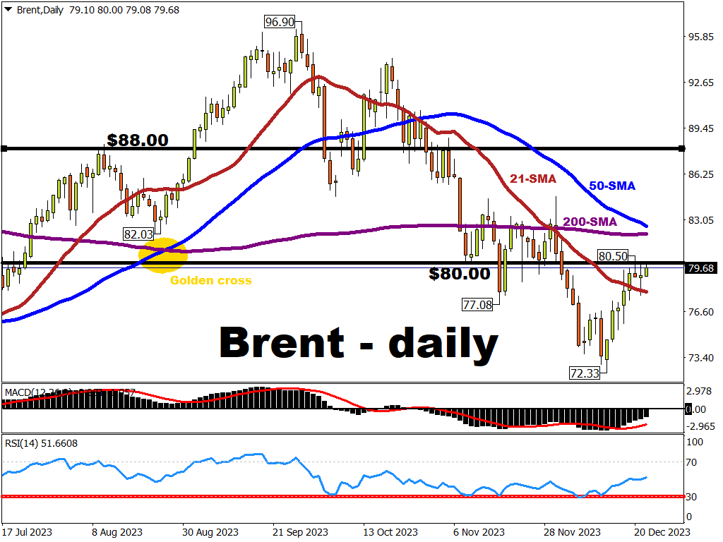 For today, the US PCE Deflator data release may determine whether Brent spends Christmas above or below $80/bbl.