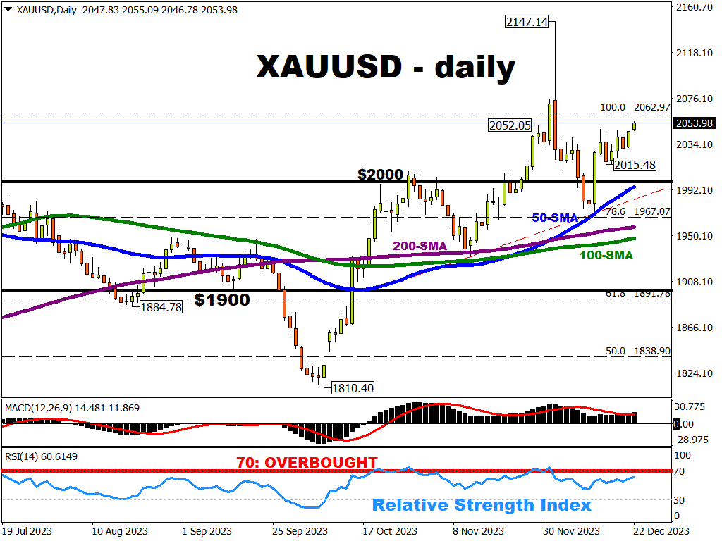 Gold bulls (those hoping prices will move higher) must be delighted that prices were able to overcome recent cycle highs at $2048.09 (Dec 14th intraday high) and $2052.05 (Nov 29th intraday high).