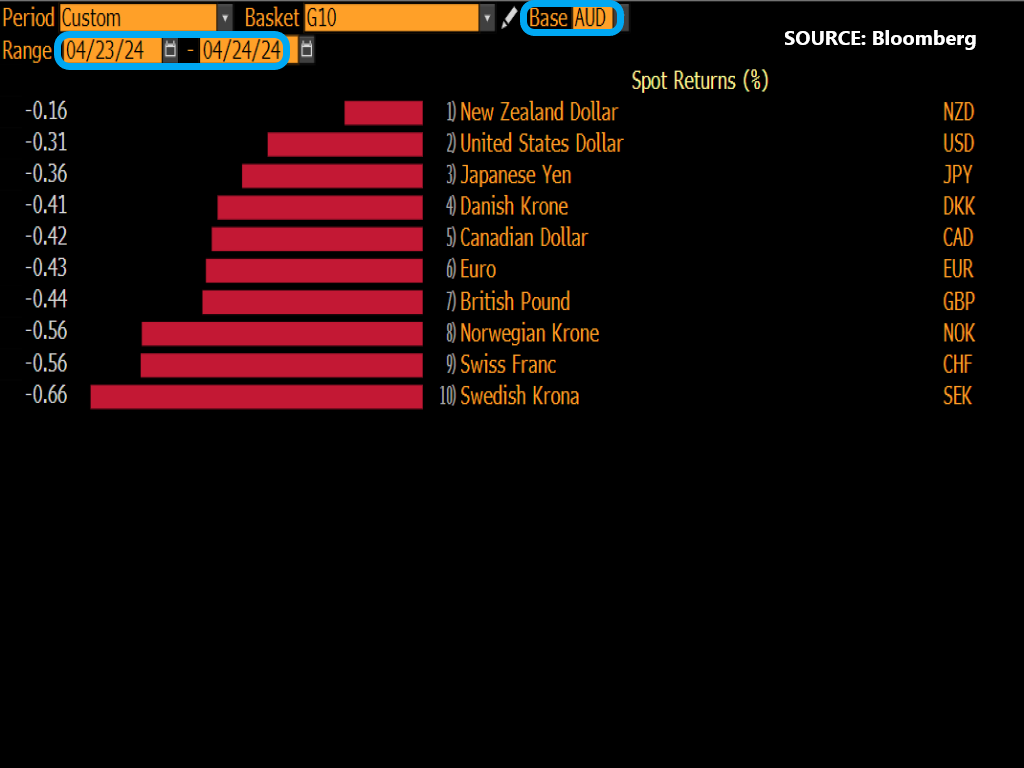 Given all the above, no surprise that the Aussie is outperforming its G10 peers against the US dollar so far today (Wednesday, April 24th).