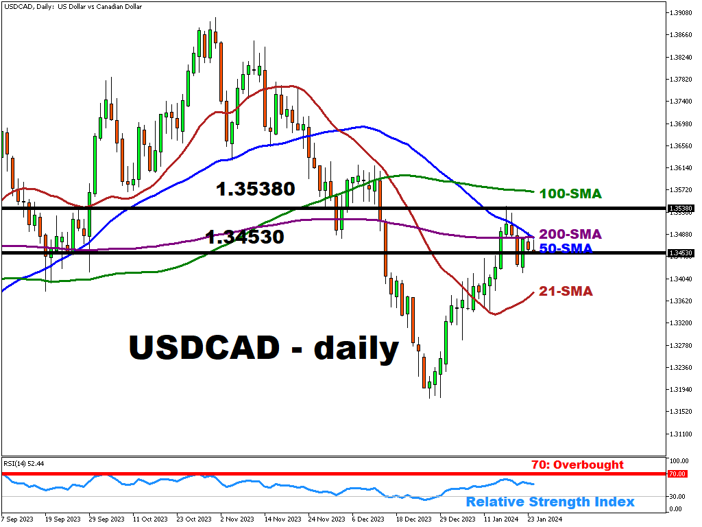 USD/CAD is trading marginally under its 50-day and 200-day SMA at 1.3480/1.