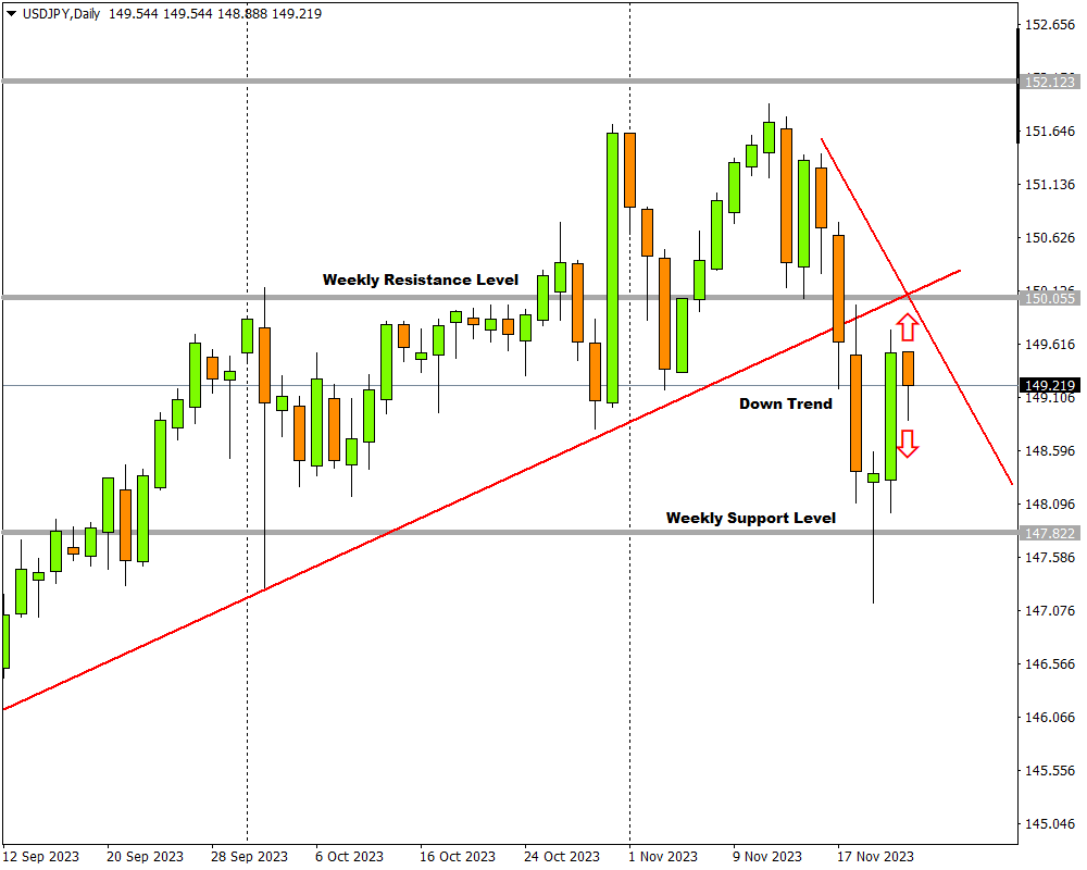 The USDJPY is currently in a down trend and busy with a correction wave.